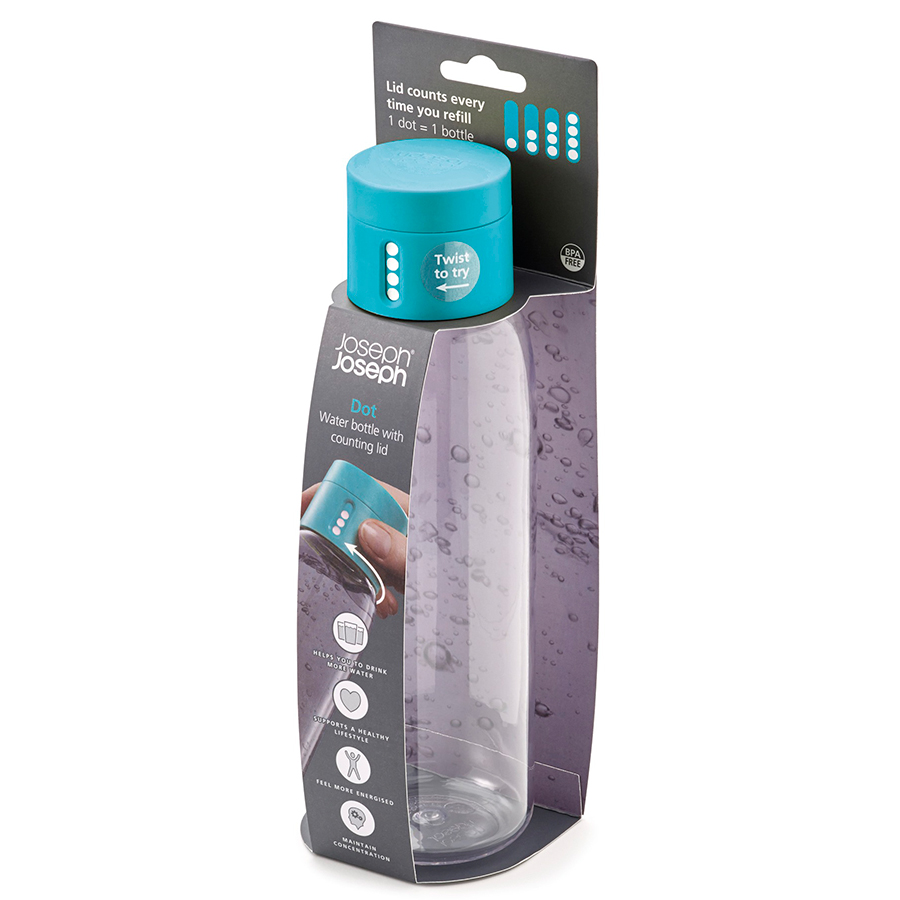 Уникальная бутылка, которая поможет вам контролировать ежедневное потребление воды. Инновационная крышка со счетчиком запомнит каждое наполнение бутылки в течение дня. Просто закрутите крышку до появления точки, а для питья используйте верхнюю крышку. Новая точка появится каждый раз, когда бутылка заново заполнена и крышка закручена.