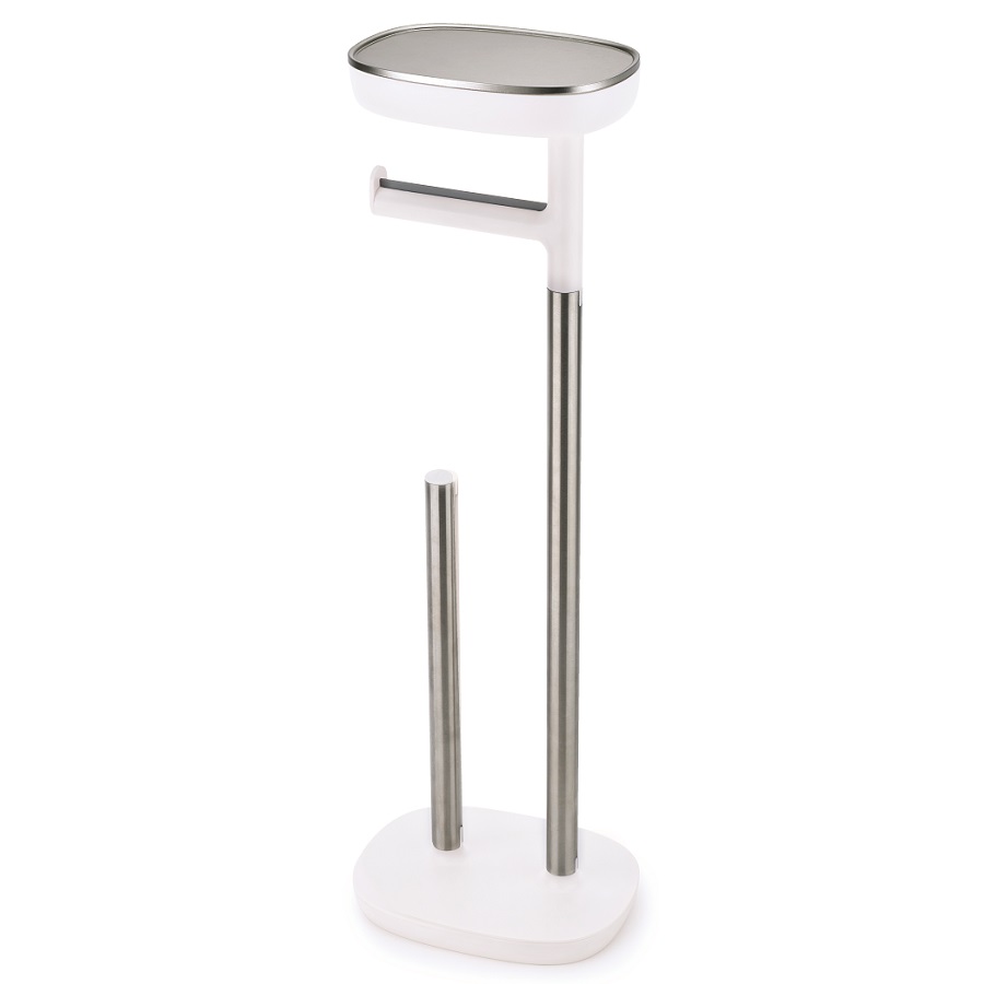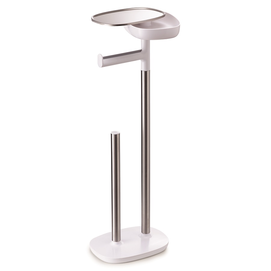 Держатель для туалетной бумаги со столиком отлично впишется в любую современную ванную комнату. Подставка подходит для нескольких рулонов туалетной бумаги, на поднос можно положить книгу, украшения, гаджеты, место под съёмным подносом можно использовать для хранения средств гигиены. Подставку легко протирать и мыть.