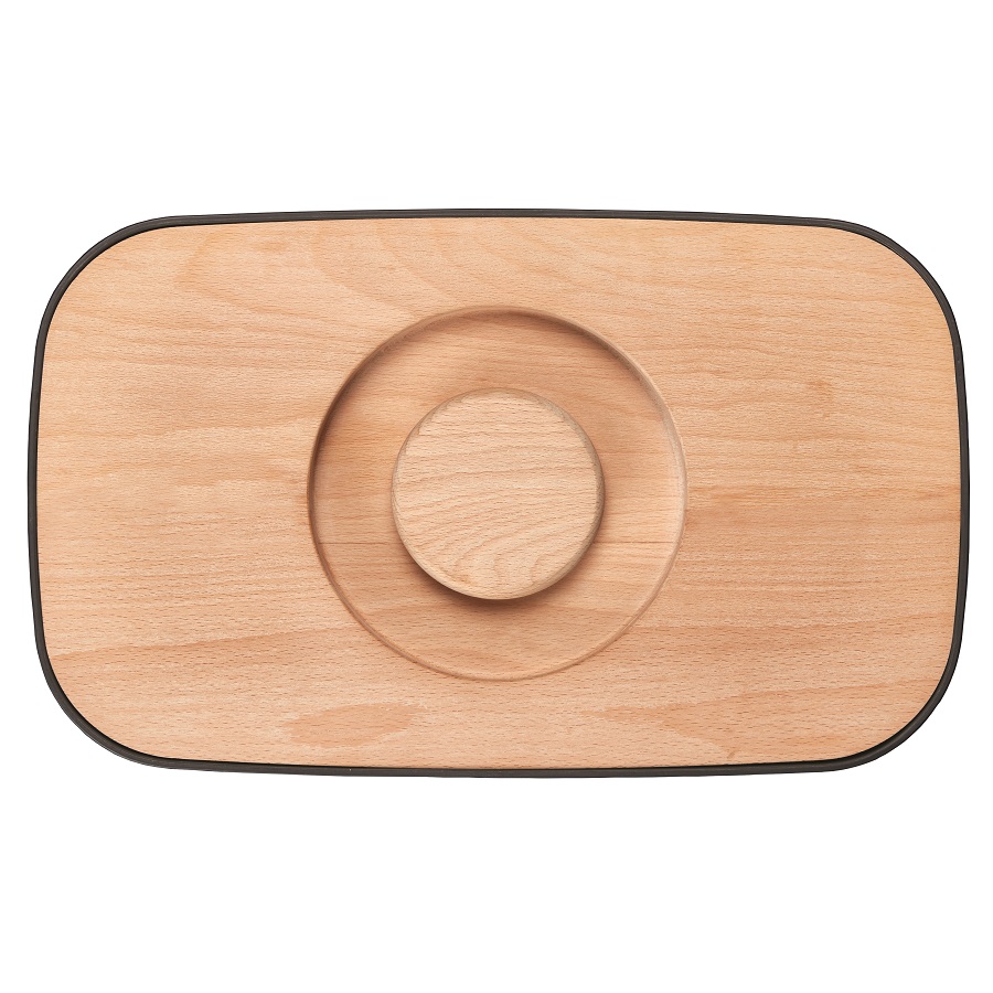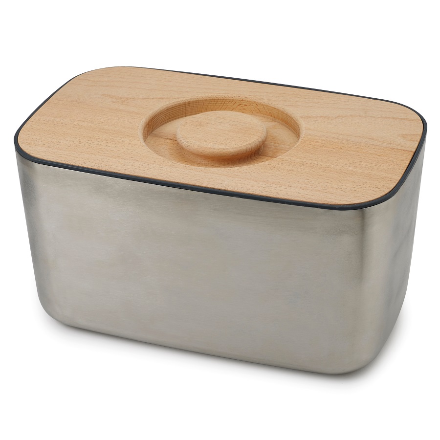 Крышку можно также использовать как доску для резки – эта удобная задумка помогает сэкономить пространство на кухне. Специальные углубления внутри доски не позволят хлебным крошкам высыпаться на рабочую поверхность.
