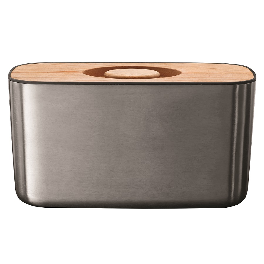 Компактная стальная хлебница с бамбуковой крышкой и нескользящими ножками. Благодаря материалу, из которого изготовлена хлебница, батоны и багеты подолгу остаются свежими и не впитывают посторонние запахи. Кроме того, такую хлебницу очень легко мыть, а сам материал исключает появление трещин и царапин на поверхности изделия.