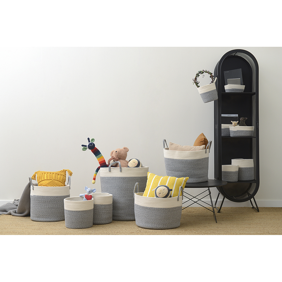 Материал: хлопковый шпагат мягкого плетения. Диаметр: 30 см. Высота: 29 см. Цвет: кремовый/светло-серый.