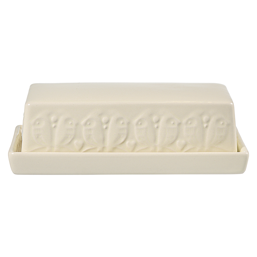 Масленка из коллекции Birds of Paradise – качественная посуда из экологичной каменной керамики, которая дольше сохраняет продукты свежими и великолепно дополняет любую сервировку. Отличительной особенностью серии является объемный узор природной тематики, придающий дизайну элегантные нотки. Благодаря высокой прочности и устойчивости материала к износу изделие не теряет привлекательный внешний вид на протяжении всего срока службы. Покрытие глазурью облегчает уход, обеспечивает декоративность и дополнительную защиту от внешних воздействий. Масленка состоит из поддона для масла с небольшими бортиками и объемной крышки прямоугольной формы.