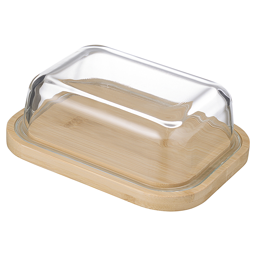 Масленка от бренда Smart Solution с дизайном в эко-стиле органично впишется в различные варианты сервировки, поможет создать за столом уютную атмосферу. Основание изделия выполнено из бамбука. Натуральный материал не меняет вкус продукта, не выделяет посторонних запахов. Крышка из прочного боросиликатного стекла не боится перепадов температуры, устойчива к повреждениям. Компактная емкость не занимает много места в холодильнике.