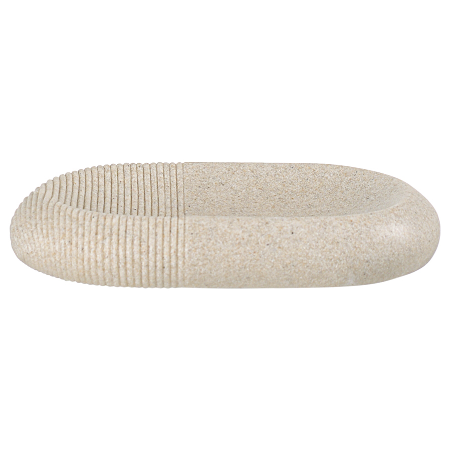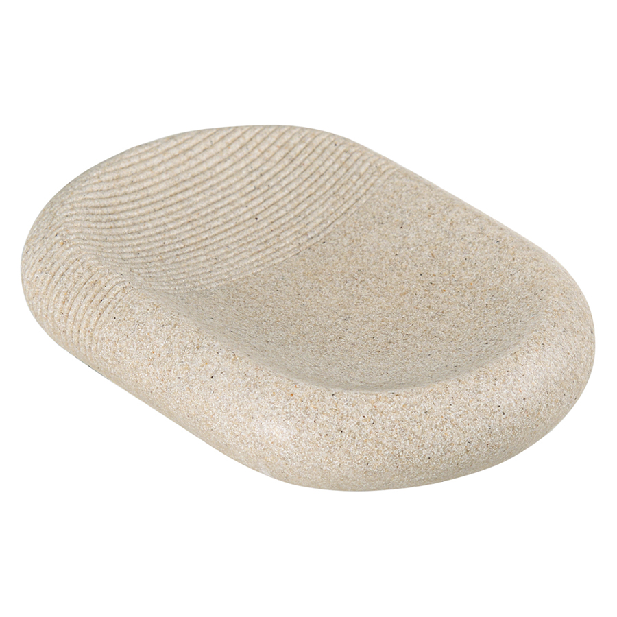 Мыльница Loup выполнена из полирезина, стилизованного под натуральный камень бежевого оттенка. Материал легко моется, отличается устойчивостью к влаге, ударам и царапинам, что делает его идеальным выбором для ванной комнаты. Аксессуар компактных размеров занимает минимум места на раковине или полке.