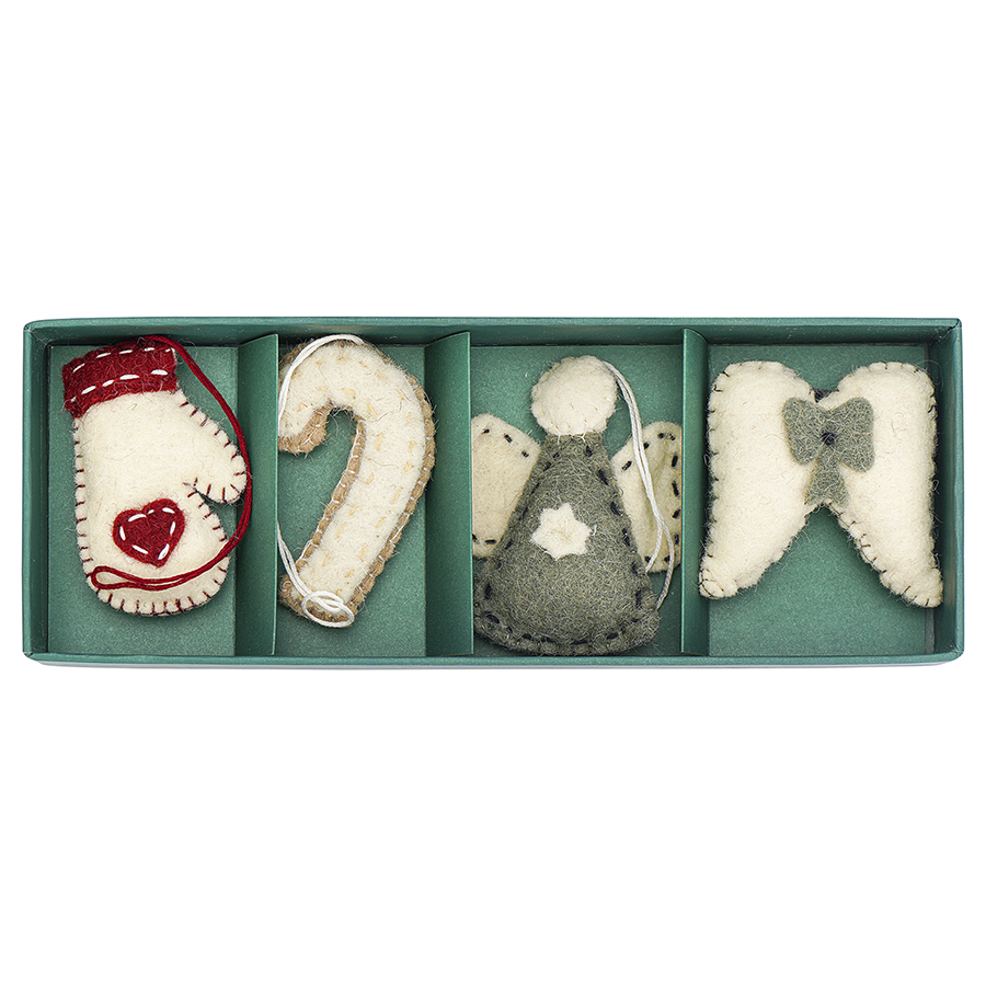 Материал: фетр. Размеры: 9х3х9 см, 5х3х8 см, 7х3х7 см, 6х3х9 см. Количество украшений в наборе: 4 шт.