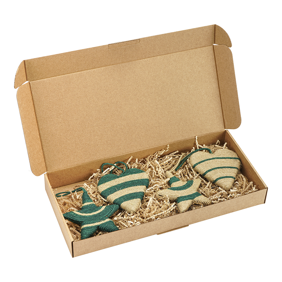 Набор елочных украшений Trendy stripes из джута и гофрированного картона из коллекции New Year Essential привнесет в интерьер ностальгические нотки и напомнит о временах, когда новогодние игрушки создавались вручную и носили особенный характер. Такой праздничный декор непременно понравится ценителям предметов из натуральных материалов и поклонникам стиля рустик.
