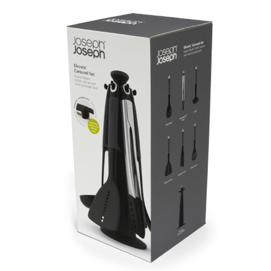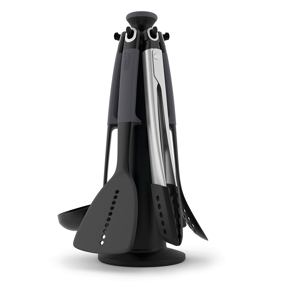 Входит в серию кухонных приборов Elevate™ , разработанную с целью минимизировать беспорядок во время готовки. Каждый прибор оснащён инновационной утяжеленной ручкой, благодаря которой испачканная часть инструмента всегда остаётся навесу и не касается рабочей поверхности. Удобная вращающаяся подставка обеспечит легкий доступ к нужному прибору.