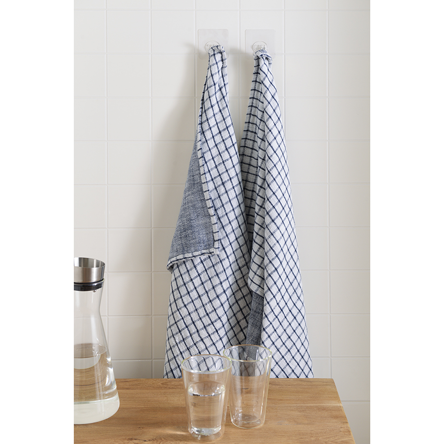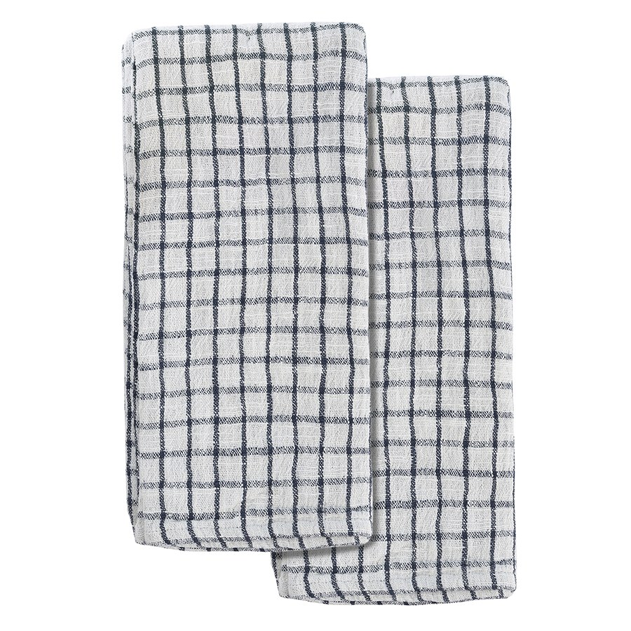 Набор из двух муслиновых полотенец с графичным дизайном из коллекции Essential станет помощником на кухне. Полотенца в серо-синей гамме имеют более темную лицевую сторону, а с изнаночной украшены вытянутой клеткой. , ,Хлопковый муслин отлично впитывает и испаряет влагу, не деформируется и не линяет при стирке, на нем не образуются катышки. Подходит для ежедневного использования и не оставляет ворсинок при протирании посуды.
