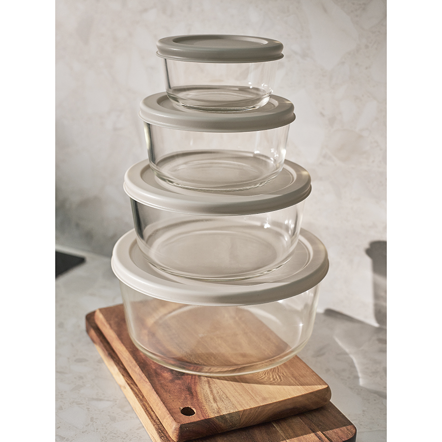 Материалы: боросиликатное стекло, полиэтилен. Объемы: 236 мл, 472 мл, 944 мл, 1,6 л. Количество предметов в наборе: 4 шт.