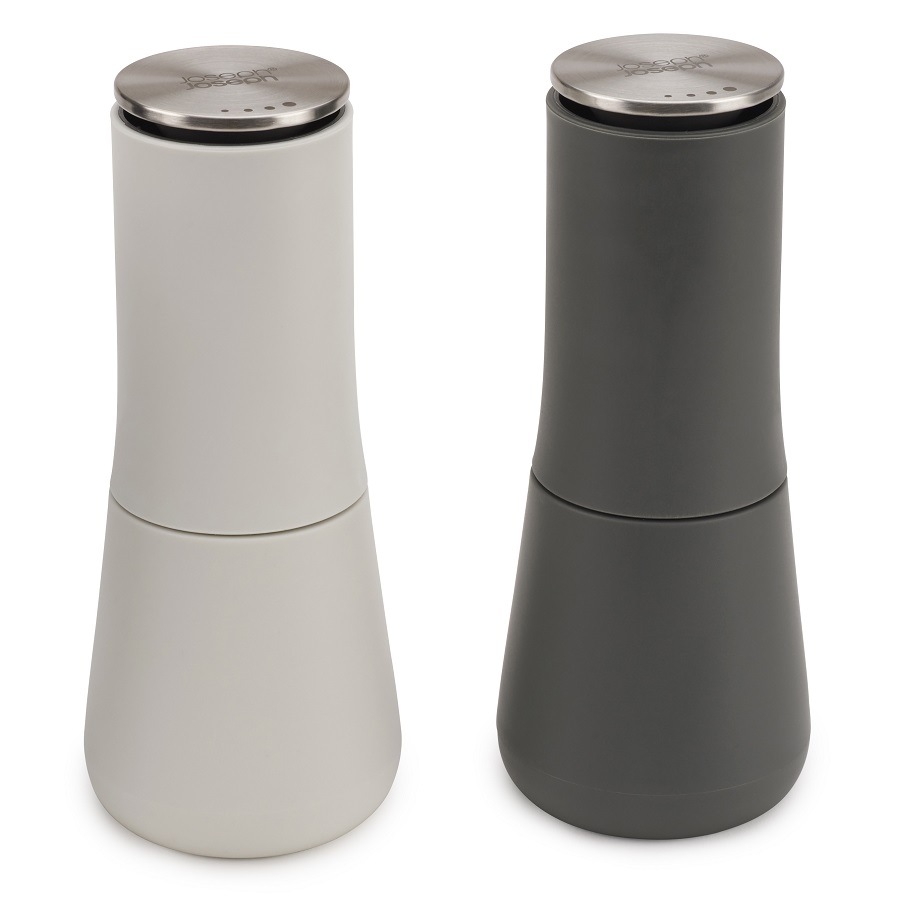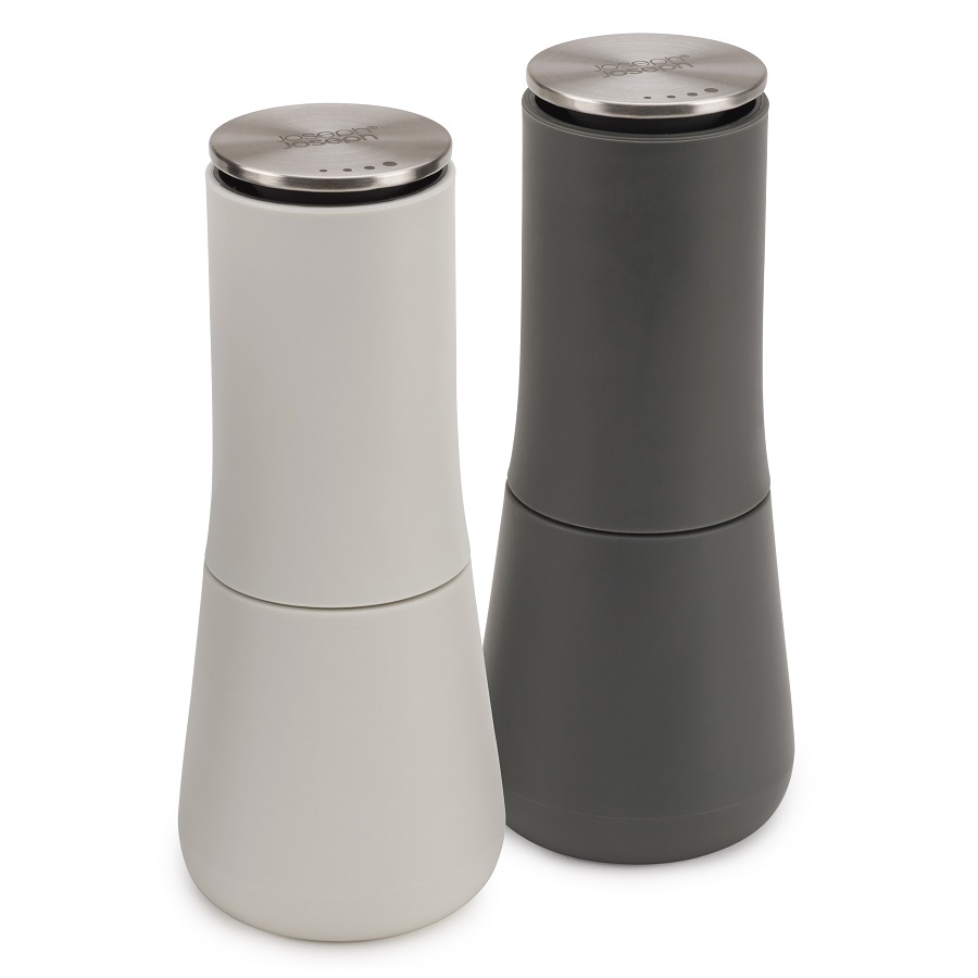 Набор мельниц от дизайнеров бренда Joseph Joseph – , ,больше, чем просто солонка и перечница. Это всегда свежие и ароматные специи идеального помола. Для использования необходимо перевернуть мельницу вверх дном и повернуть основание. Внутри расположена надежная керамическая мельница. С помощью вращающейся верхней части девайса можно регулировать размер помола соли и перца. Корпус изделий изготовлен из нержавеющей стали с белым и черным матовым покрытием. Благодаря этому набор мельниц для соли и перца станет стильным и элегантным дополнением к вашему обеденному столу.