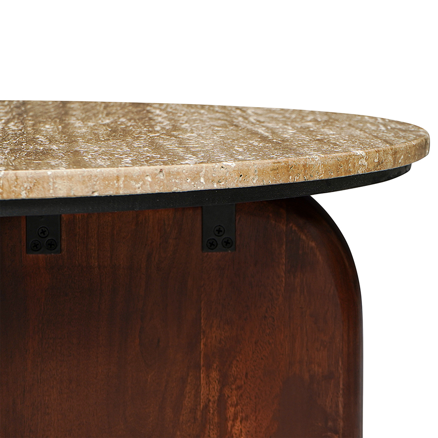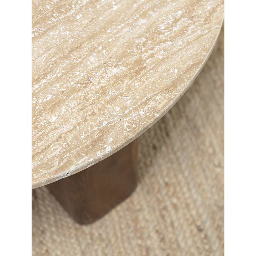 - Нейтральность травертина и естественный оттенок древесины позволяют вписать столик в интерьер, оформленный в любой цветовой гамме.