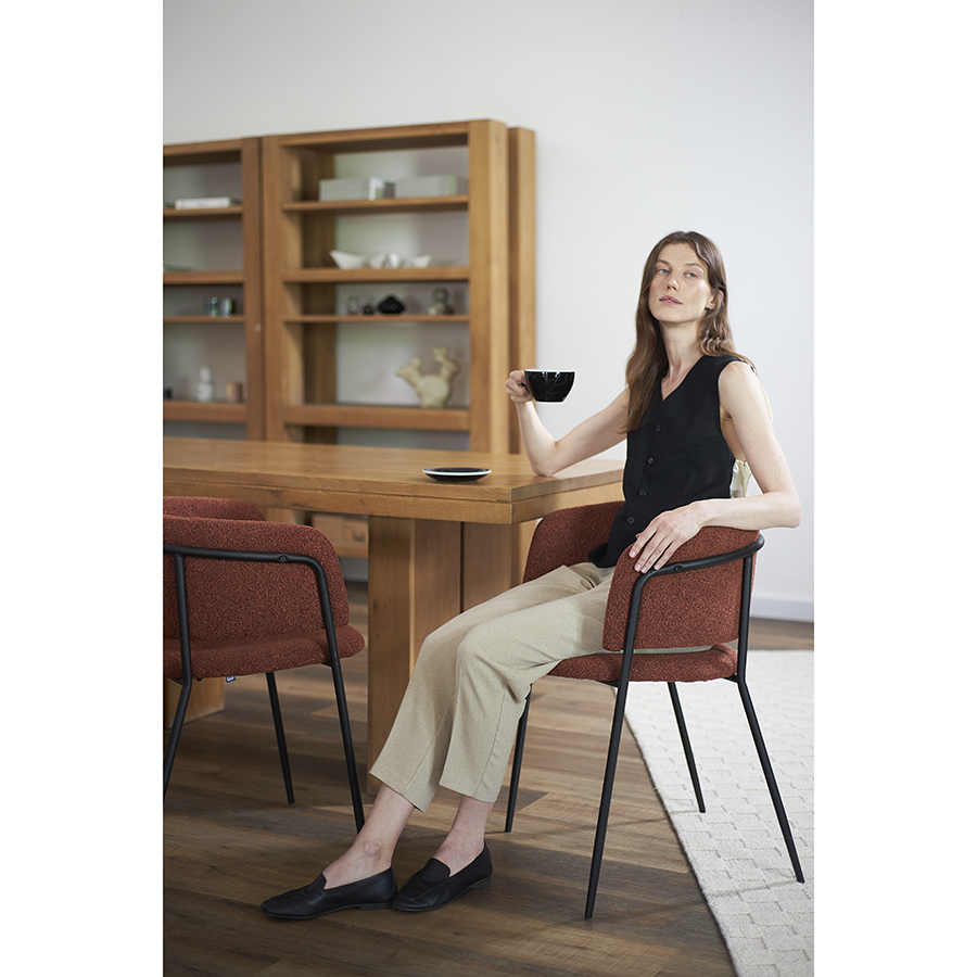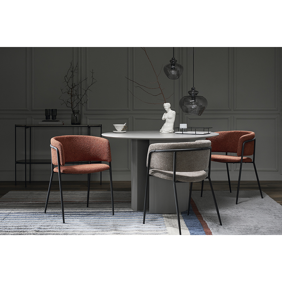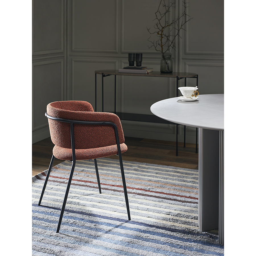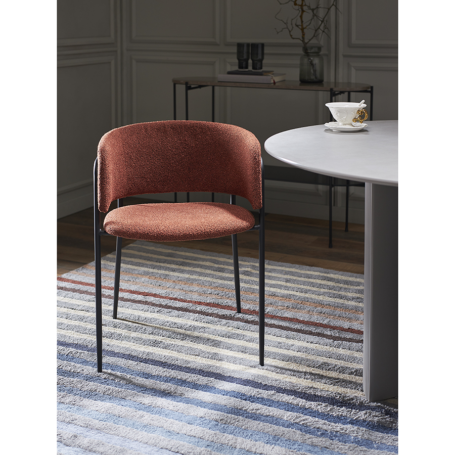 "Стул Helning с буклированной обивкой непременно понравится любителям уюта и стильных предметов интерьера. Дизайнеры по всему миру выбирают мебель “букле”, так как она смотрится органично даже в самых минималистичных пространствах, добавляя оформлению особый шарм и глубину.