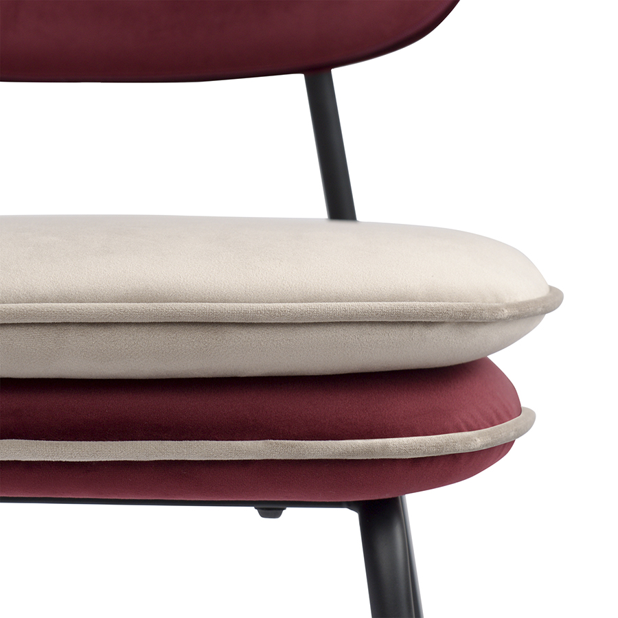 "Стул Pea с контрастным кантом и мягкой обивкой из бархатистого велюра станет настоящим украшением интерьера и идеальным выбором для ценителей качественной и элегантной мебели.