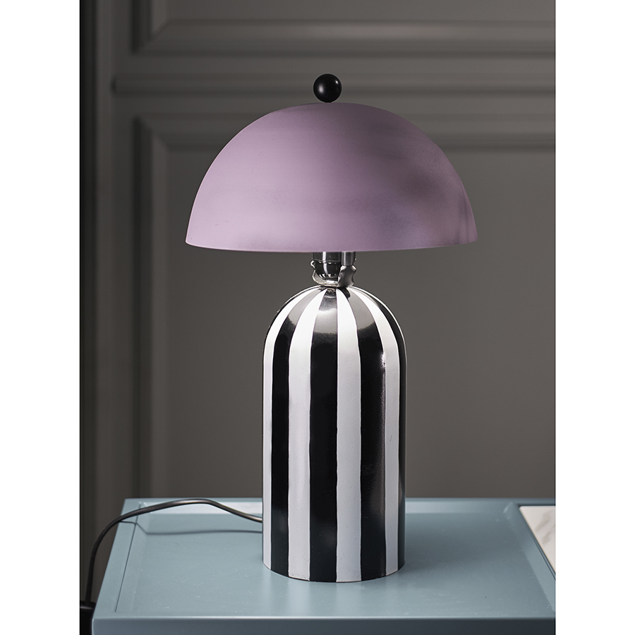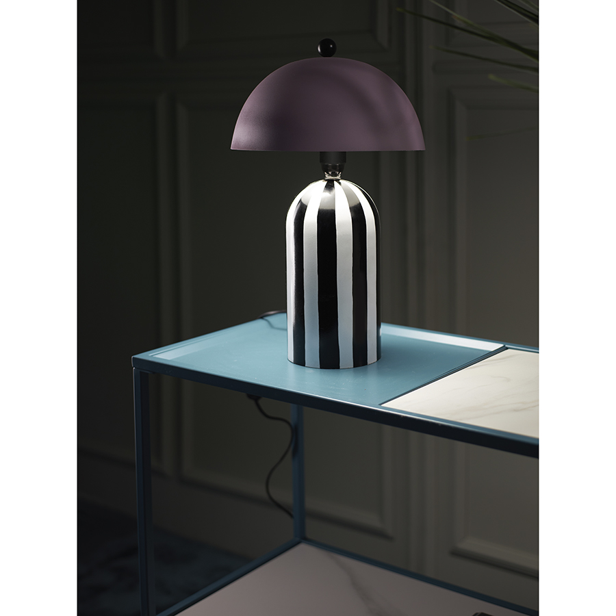 Материал: железо. Размеры: 25х25х38 см. Цвет: черный/белый/лиловый. Тип цоколя: Е27. Степень пылевлагозащиты: IP20. Максимальная мощность ламп: 25 Вт. Напряжение: 220-240 В. Длина провода: 2,5 м. Переключатель: встроенный. Площадь освещения: 1,7 кв.м. Лампы в комплекте: нет.