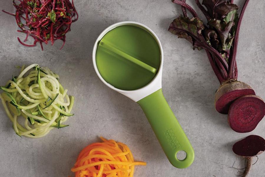 Терки-спиралайзеры Joseph Joseph не так давно появились в арсенале домашних кулинаров. Благодаря этим устройствам можно значительно расширить спектр ваши любимых блюд или придать оригинальный вид привычным салатам, супам и овощным рагу. Устройство с удобной нескользящей ручкой за считанные минуты превратит морковь, огурец, свеклу, кабачок в спиральные тонкие ломтики, которые можно использовать для украшения или подать в виде овощных спагетти.