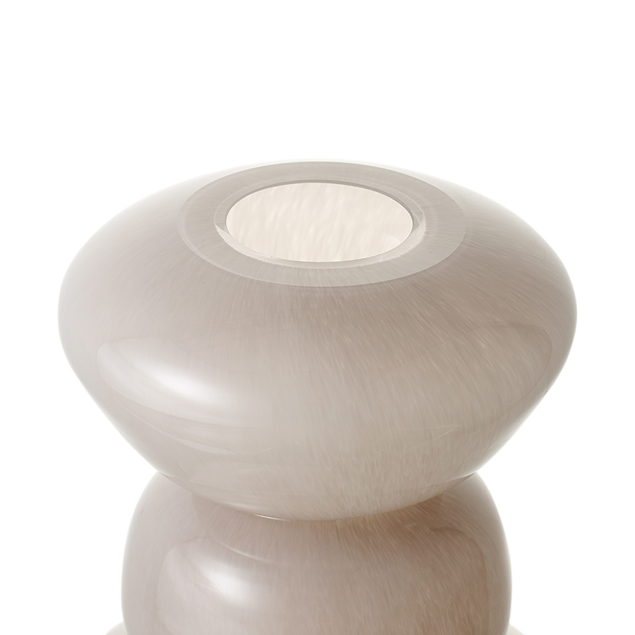 Материалы: содовое стекло. Размеры: 18х18х25 см. Диаметр горлышка: 5,2 см. Цвет: жемчужно-серая.