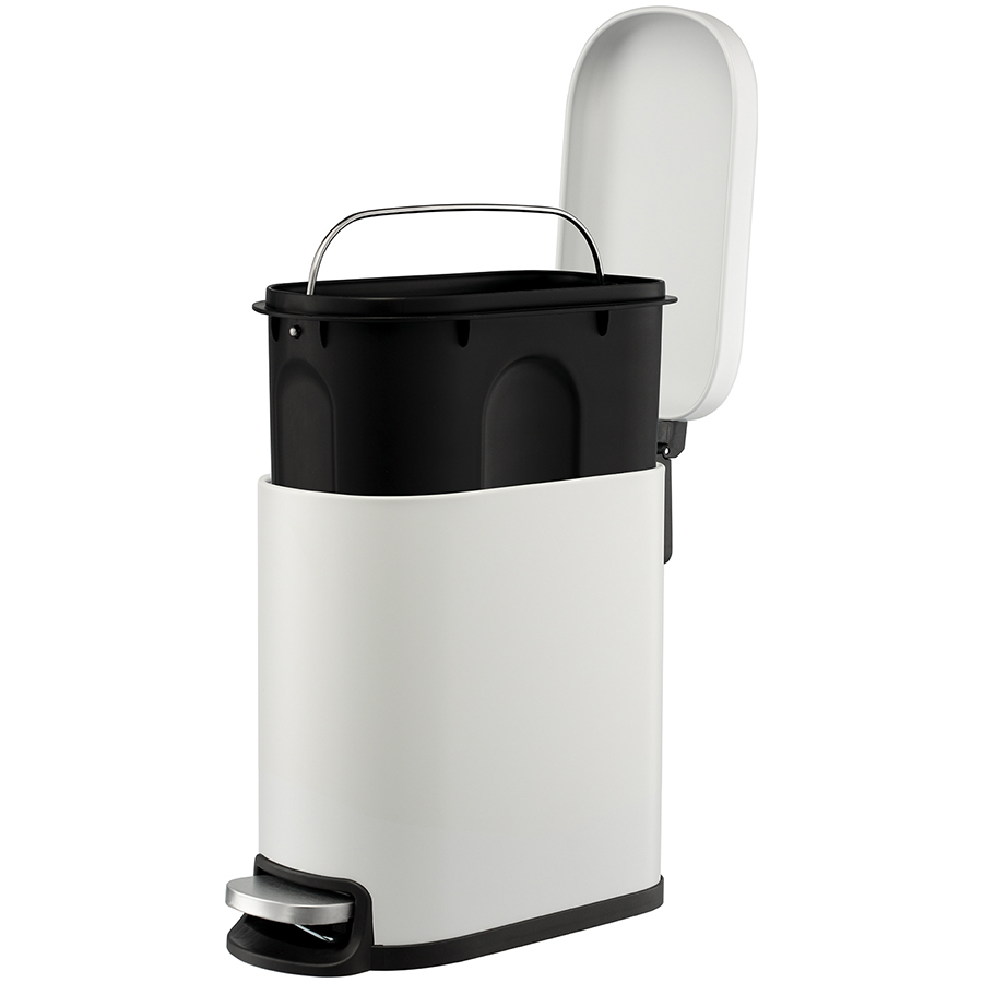 Материалы: углеродистая сталь с порошковым покрытием, полипропилен. Размеры: 14х27х29 см. Длина с педалью: 30 см. Объем: 5 л. Цвет: светло-серый.